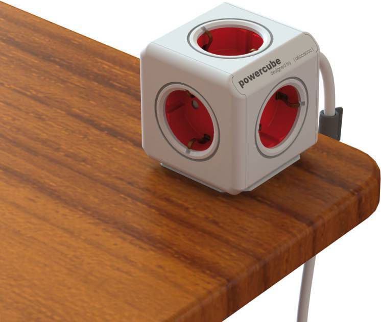 allocacoc powercube extended stekkerdoos met 5 contacten rood wit 1 5 meter meubelmooi nl