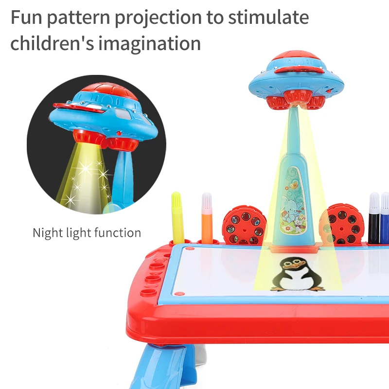 zhorya projector tekentafel schilderen bureau ufo ontwerp leren educatief speelgoed voor kinderen blauw tafel tekenen pen kids toy game drawing toys aliexpress