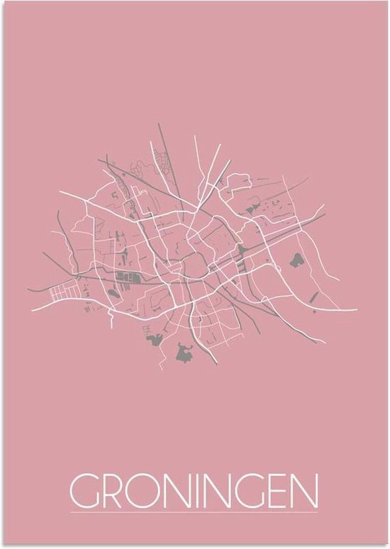 bol com designclaud plattegrond groningen stadskaart poster wanddecoratie roze a4 poster