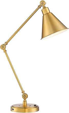 wray modern comtemporary adjustable desk table lamp with usb charging port warm antique brass gold metal for living room bedroom house bedside nightstand home office family 360 lighting amazon com